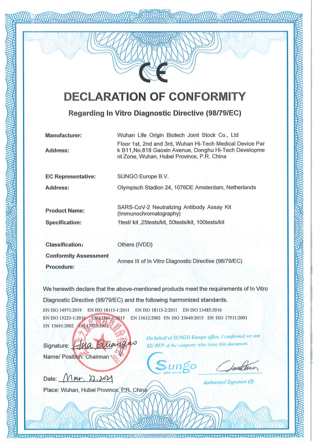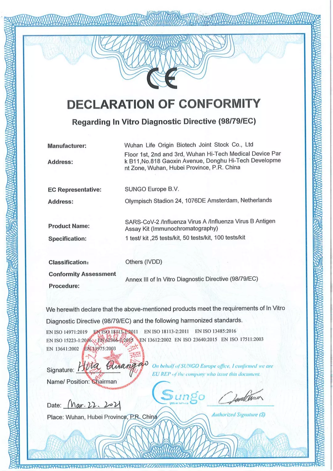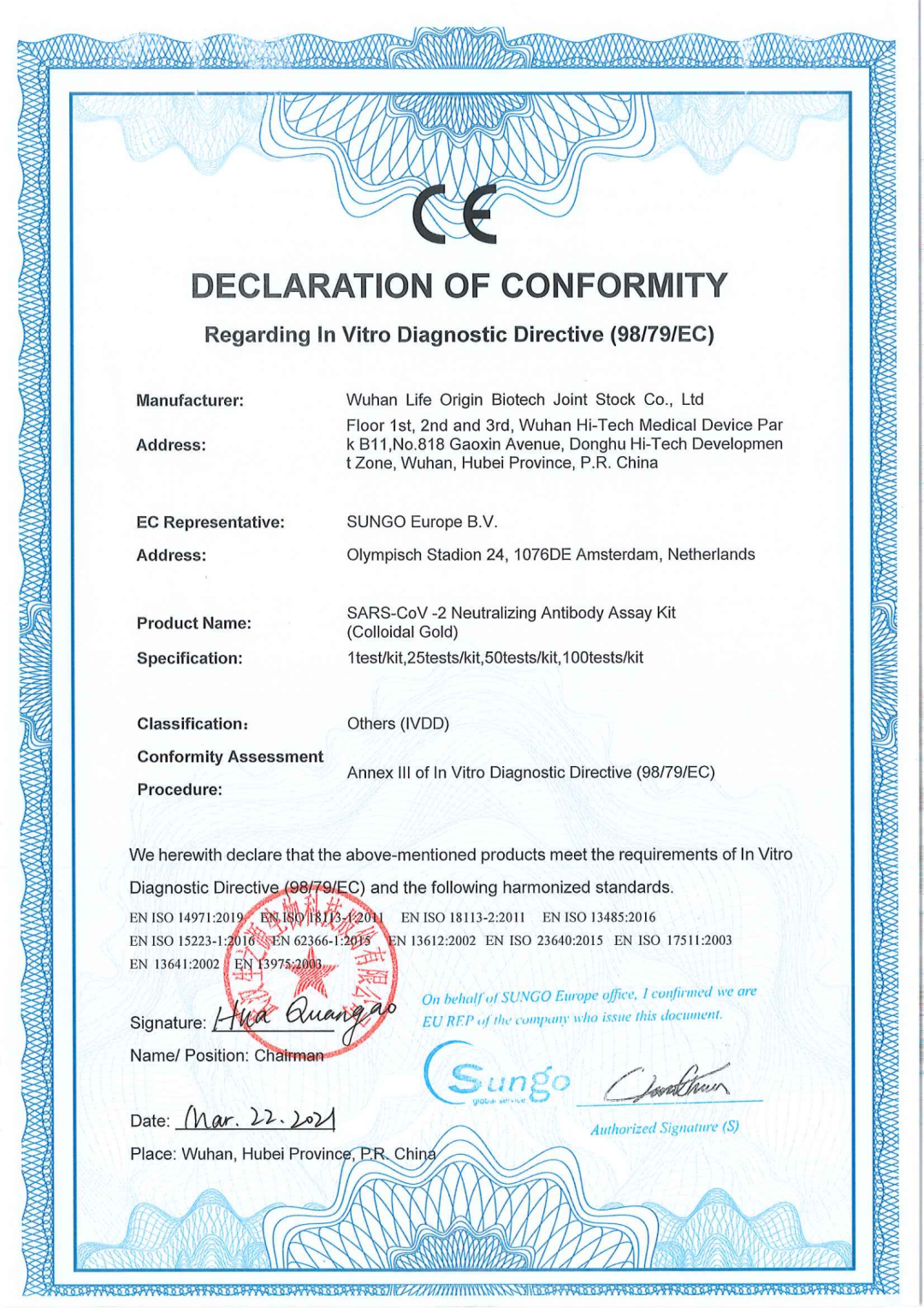 近日,生之源自主研發(fā)的幾種(zhǒng)新冠産品完成(chéng)歐盟CE認證,标志着我司産品符合歐盟相關指令的要求,已完成(chéng)歐盟主管當局登記注冊,具備歐盟市場的準入條件。這(zhè)是生之源繼新冠抗原拭子檢測試劑盒獲得CE認證後(hòu)的又一突破。産品包括:新型冠狀病毒(SARS-CoV-2)中和抗體檢測試劑盒:SARS-CoV-2 Neutralizing Antibody AssayKit(Immunochromatography)、新型冠狀病毒(SARS-CoV-2)中和抗體檢測試劑盒(膠體金):SARS-CoV-2 Neutralizing-Antibody Assay Kit(colloidal Gold)、新型冠狀病毒(SARS-CoV-2)中和抗體測定試劑盒(酶聯免疫法):SARS-CoV-2 Neutralizing Antibody Assay Kit (ELISA)、新冠/甲乙流聯檢試劑盒:SARS-CoV-2/Influenza VirusA/Influenza VirusB Antigen Assay Kit (Immunochromatography)(5)新型冠狀病毒抗原快速檢測試劑盒(唾液):COVID-19 Antigen Rapid Test Kit(Saliva)。
